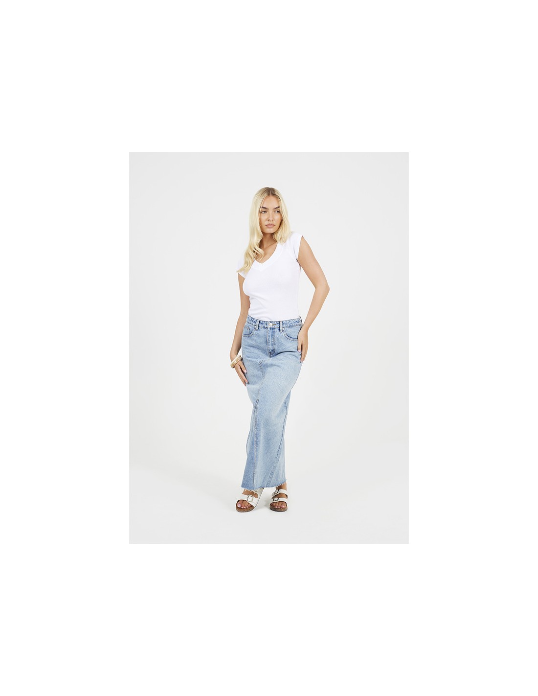 Camiseta de mujer de manga corta con cuello pico