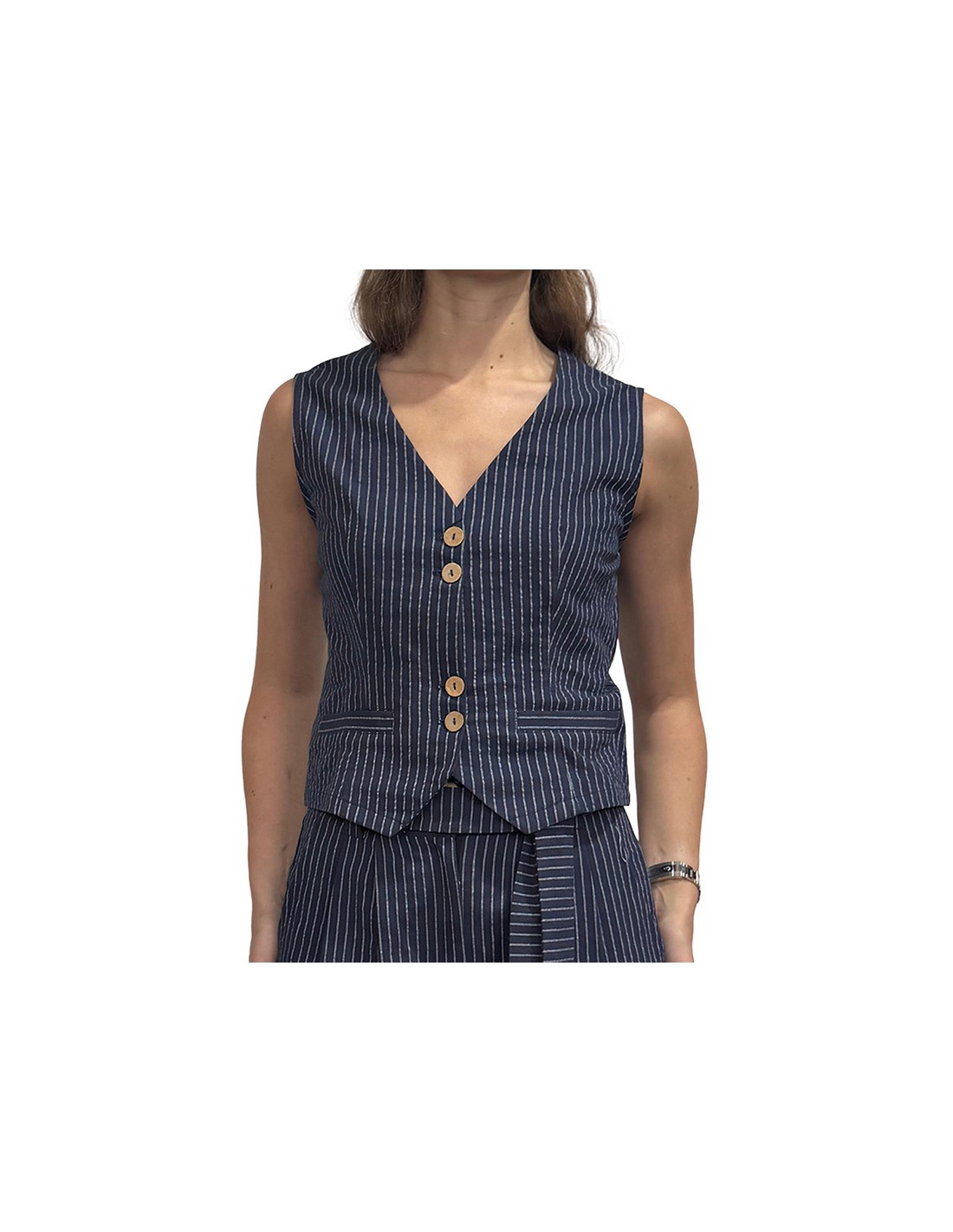 Camisa de rayas de mujer manga larga, detalle de abertura en la espalda
