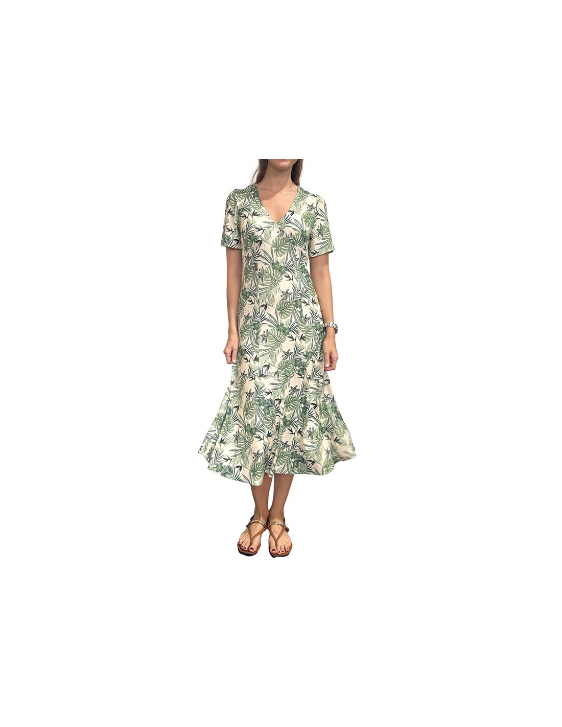 Vestido estampado de manga corta y cuello cuadrado con lazada en la espalda